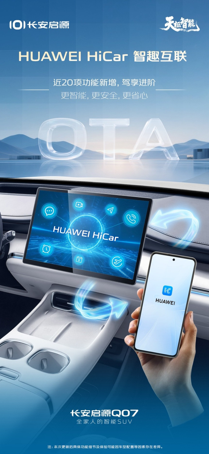 近日,长安启源Q07正式开启SDA OS-N 1.4.0版本OTA推送。本次升级聚焦智能交互、安全守护与用户体验的全面提升,新增近20项功能,并对车机交互与细节体验进行全面优化,让长安启源Q07的使用体验更加智能、便捷,也更具温度。